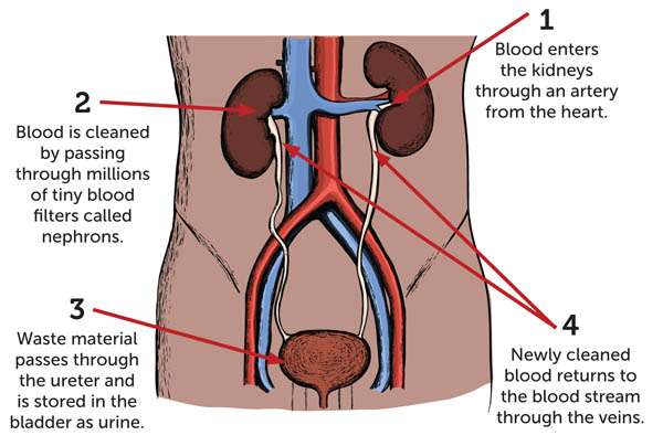 They work as filters to remove water and waste from your blood. You get rid of this waste when you pass urine (pee).